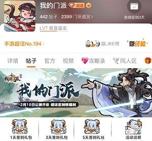 前往微博搜索“我的门派超话”,进入超话位置后在帖子上方就可以看到签到礼包了,通过签到的方式获得签到礼包,活动时间从2月10日持续到2月16日,在签到1天、3天、5天的时候可以获得相应奖励。