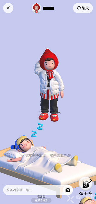 2、点击后会弹出聚焦的画面,在这里可以给好友发送信息,双击好友的人物形象即可进行戳一戳;