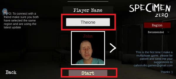 2、在创建游戏角色功能界面点击输入自己的名字,随后点击下方的【Start】进入到游戏选择玩法界面中;