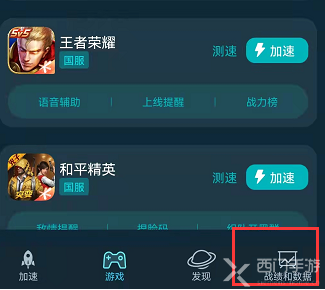 3、绑定好之后,点击右下角的【战绩和数据】功能;