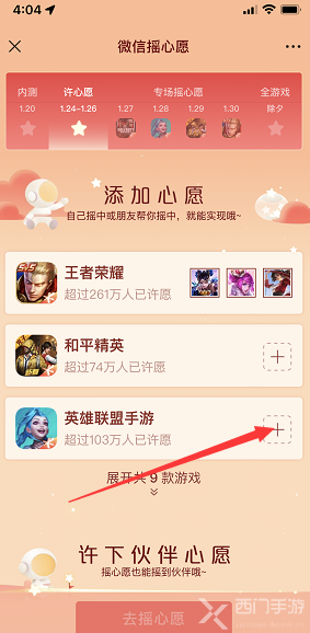 1、在微信中搜索【微信游戏摇心愿】,下面就会有相关的活动;
