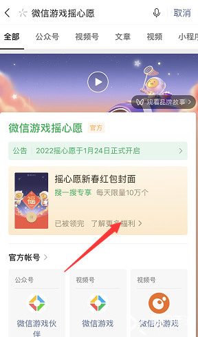 1、在微信中搜索【微信游戏摇心愿】,然后会出来摇心愿的活动,如下图: