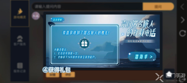 3、提问后就可以获得来自匿名旅人的礼包,之后在游戏里面进行领取即可。