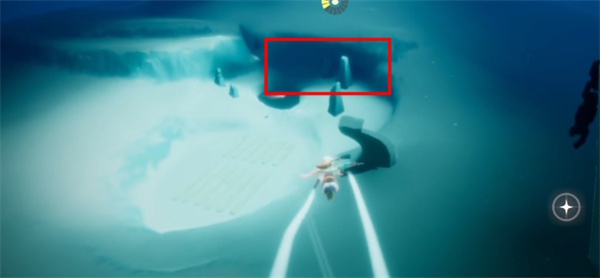18、拿到上面的小金人后俯瞰水面,飞往下面的水下建筑位置,通过上面的缺口潜入水下,通过下面的楼梯往更深处的位置潜行,在前面的位置会有一个比较小的洞口,穿过洞口就可以找到小金人了。