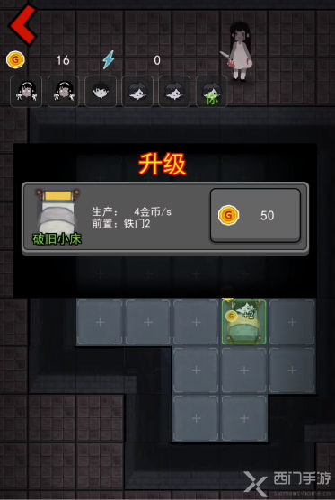 4、之后攒够金币,床那里也会有升级的提示,玩家就可以升级床了,床和铁门都是可以不断升级的。