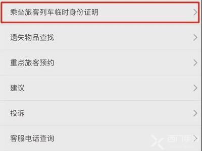 2、点击后进入对应界面,在这里可以查看许多的帮助服务,点击最上面的【乘坐旅客列车临设身份证明】;