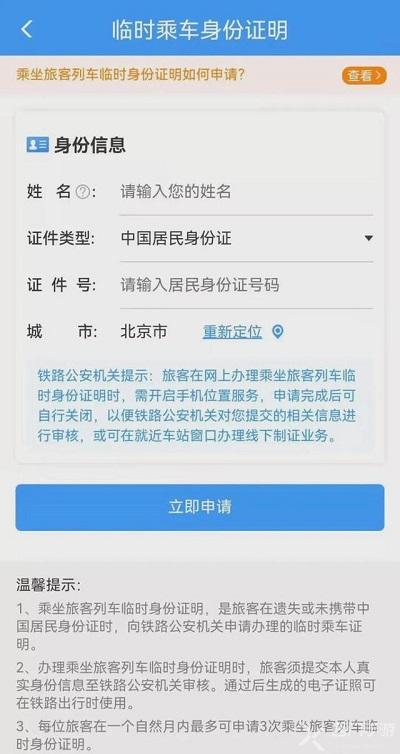 答:试点期间每人在一个自然月可申请3次电子临时乘车身份证明,如果申请超过3次,请前往车站的公安制证窗口办理纸质临时乘车身份证明;