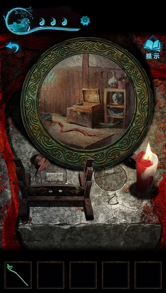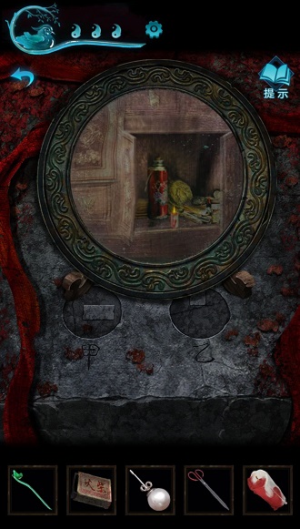 18、用小箱子挡住石门,然后再次进入地宫的位置,在里面的位置可以将金箔画贴在镜子上面,将珍珠耳环放在月亮的位置获得阴阳玉;
