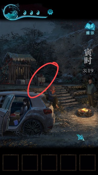 10、回到车子的前面,在前面可以看到有一排香,这里需要玩家把香的高度和刚才看到的高度烧的差不多;