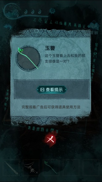22、回到车前面的位置,将托架放在镜子前面,把玉簪放在托架的位置,从而获得镜子的提示;