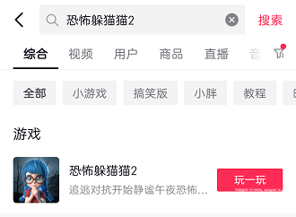 在抖音右上角搜索框的位置输入“恐怖躲猫猫2”进行搜索,搜索后即可找到恐怖躲猫猫2的小游戏,点击后面的玩一玩即可进入游戏畅玩,全新的新春版本可以在游戏中去体验,在游戏中寻找宝石进行通关;