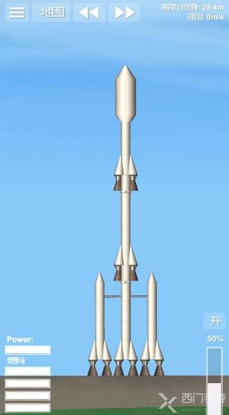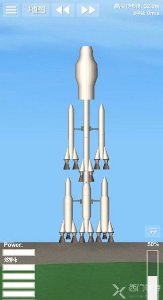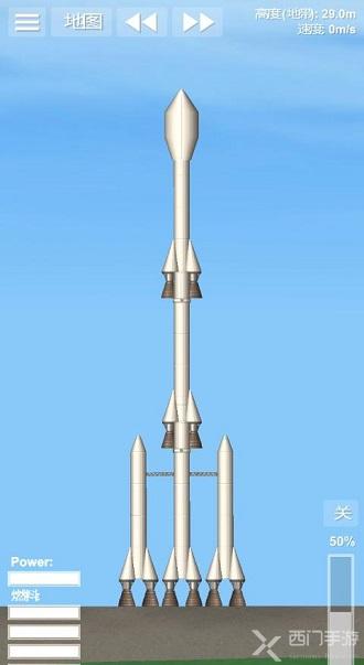 这个火箭是比较简单的火箭样式,里面搭载了一个小型的卫星,超长的燃料箱以及两个辅助的燃料箱提供更多的燃料补给;