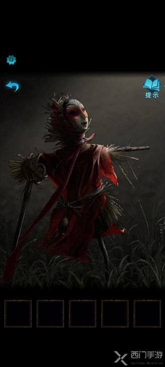 5、根据之前茶杯颜色进行适配后可以获得钥匙,用钥匙打开一开始镜头门前的锁,打开后获得一个钳子,用钳子打开隔壁的门能够看到一个稻草人;