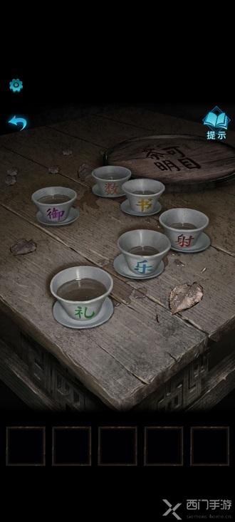 3、然后使用香灰铲去开里面的门,开启门后可以看到桌子上面的茶杯,墙角的位置有一个水壶,将香灰倒进去获得香灰水,然后将香灰水倒入茶杯里面然后得到古代礼仪六艺;