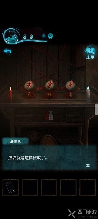 13、男的拿着皮影点击走廊,这里记得跟着皮影走,过完剧情后将手机立在石碑上面,然后把烟袋烧给妹子;