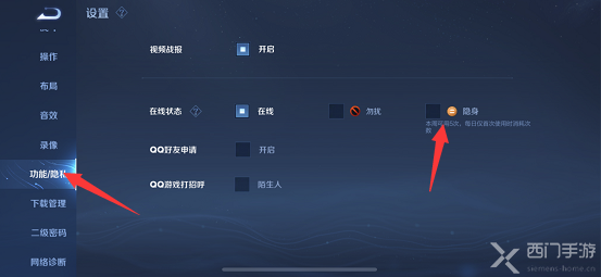 在王者荣耀游戏中有很多不同的功能,其中玩家是可以设置隐身的,设置隐身之后其他玩家就看不到玩家在线了,那么该怎么设置隐身呢?接下来小编为大家带来了详细介绍,希望可以帮助到大家。