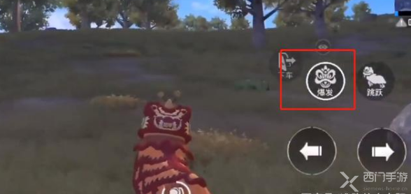 2、不过这个舞狮也是可以回血的,玩家脱离战斗之后,点击界面右侧的【爆发】;