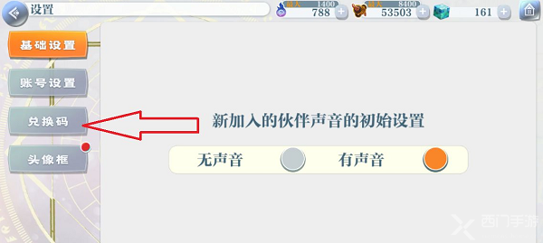 2、进入设置界面后可以查看众多的设置选项,在里面可以看到有【兑换码】的选项点击一下;
