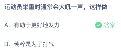 运动员举重时通常会大吼一声,这样做?这是今日的蚂蚁庄园小课堂的问题,很多玩家都比较关注这个话题,接下来就让小编为大家详细介绍一下,希望可以帮助到大家。