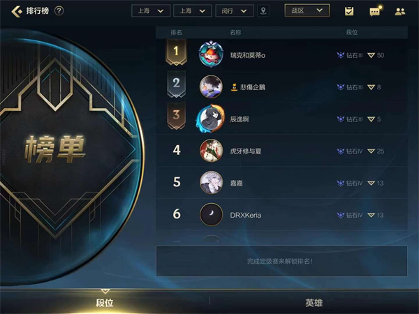 英雄联盟手游战区排名怎么显示 战区排名显示方法