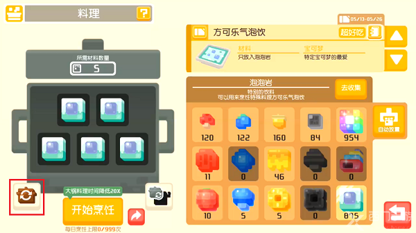 在锅子的右下角可以切换使用的大小锅,大锅所消耗的材料数量更多。