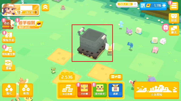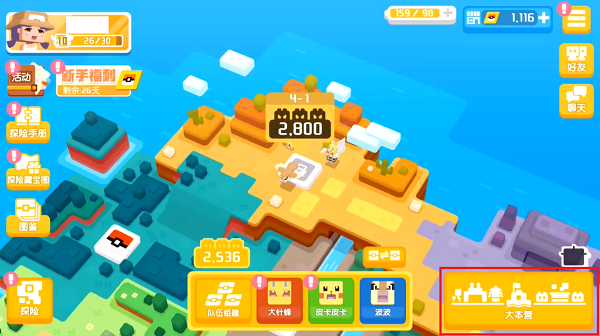 1.打开宝可梦大探险游戏,在游戏中点击右下角的【大本营】进入;