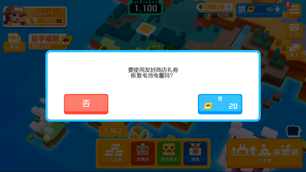 如果不想花费时间等待体力恢复,可直接使用20友好商店礼券恢复体力,无论是多少体力值都需要花费20礼券恢复,使用后直接体力满格。