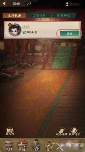 3.在“未婚徒弟”中找到需要联姻的徒弟,点击【提亲】;