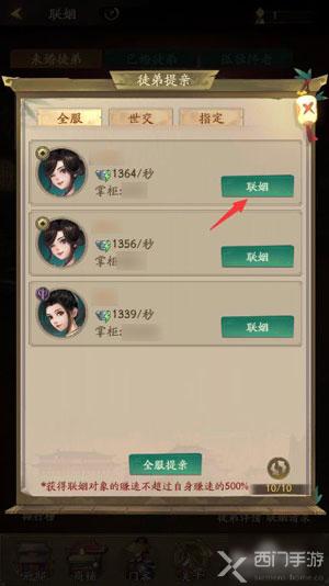 2.点击【联姻】功能,为自己的徒弟进行联姻;