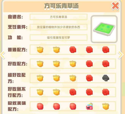 宝可梦大探险方可乐青菜汤配方-方可乐青菜汤烹饪配方分享