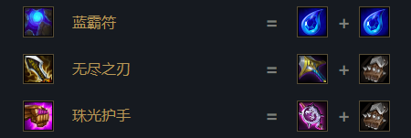 使用蓝霸符增加技能的效率,搭配无尽之刃和珠光护手增加其暴击几率,以及暴击伤害。