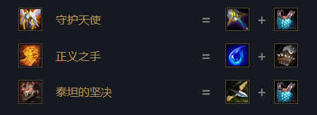 使用守护天使提升瑞雯的生存力,同时使用正式之手和泰坦的坚决增加攻击力和法术强度,并治疗其造成的伤害值获得治疗效果,还可以获得护甲和魔法抗性。