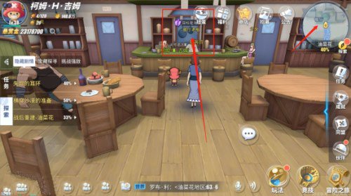 然后去来餐厅,可以看到全是紫色感叹号的我人,这些都是知道海猫消息的人,一个一个问之后,可以大概知道了些海猫的线索,去码头附近找冒险家说明情况。