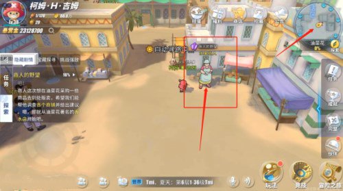 在餐厅可以找到商人,这个商人好像是在威士忌山送到这边来的,他想叫玩家再帮一次忙,这次想弄点油菜花的特色去别处贩卖,玩家需要依次去找香水、布店、水果商人。