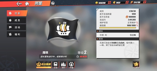 4.不过这个同盟等级是需要会长或者副会长来升级,并且需要全部同盟成员一起做任务才可以升级的。