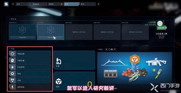 1、打开Epic或者Steam平台上的拾荒者游戏,进入游戏后,在主界面点击上方的【研究】;