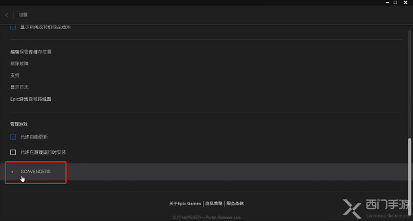 2、上下互动页面到最下方,找到【Scavengers】游戏,展开下拉框;