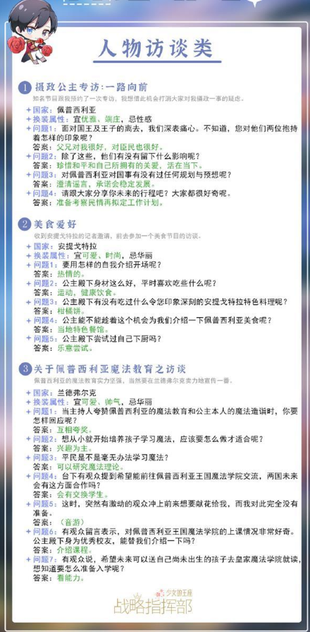 少女的王座人物访谈舆论怎么选?在游戏中会有很多好玩的玩法,其中有一个关于人物访谈的活动,其中会有很多的问题需要玩家去选择,接下来小编为大家带来了详细介绍,希望可以帮助到大家。