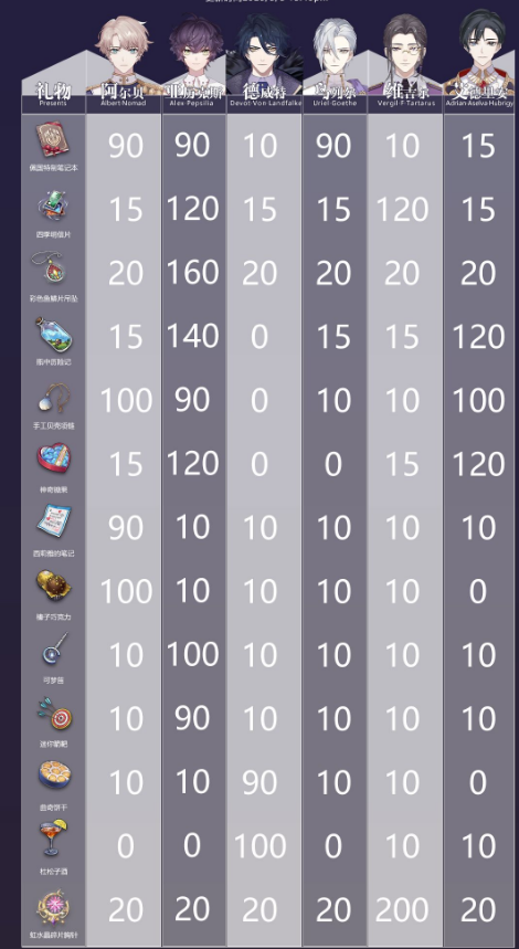 【维吉尔】送礼喜好