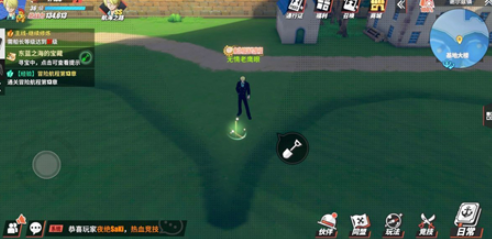 3.然后到达蓝色双子塔阴影的交汇处,靠近之后就会有一个铲子的提示,点击即可挖掘宝藏。