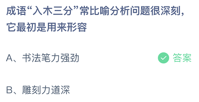 成语“入木三分”常比喻分析问题很深刻,它最初是用来形容?这是今日的蚂蚁庄园小课堂的问题,很多玩家都比较关注这个话题,接下来就让小编为大家详细介绍一下,希望可以帮助到大家。