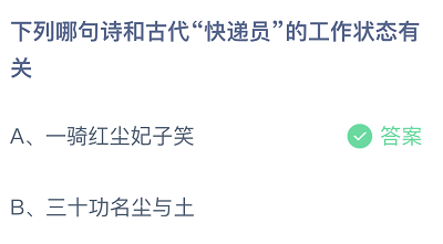下列哪句诗和古代“快递员”的工作状态有关?这是今日的蚂蚁庄园小课堂的问题,很多玩家都比较关注这个话题,接下来就让小编为大家详细介绍一下,希望可以帮助到大家。