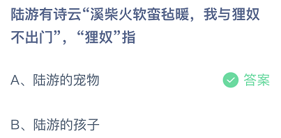 陆游有诗云溪柴火软蛮毡暖,我与狸奴不出门,狸奴指-蚂蚁庄园4月22日答案