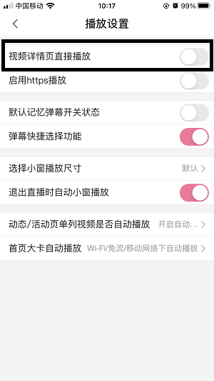 3.将【视频详情页直接播放】这个选项关闭即可。