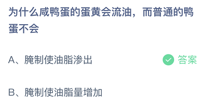 为什么咸鸭蛋的蛋黄会流油,而普通的鸭蛋不会-蚂蚁庄园4月15日答案