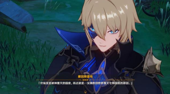 因为担忧盗宝团可能引起的混乱,所以玩家们接下了调查此事的委托任务,在调查过程中意外地发现了一座被倒吊着污秽了的风神神像,同时还遇到了深渊使徒,在赶跑他之后回来的路上遇到了戴因斯雷布。