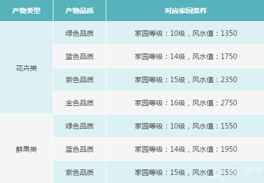 当家园风水达到1350以上时,空闲的土地上每天会自动生长出植物,少侠直接收获即可,不过玩家要注意,鲜果是有保质期的,而且风水值不同,可生长的花卉和鲜果品质也不同。