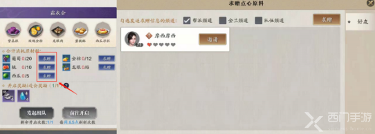 除了以上方法,玩家还可以向好友、帮派、金兰以及队友求赠,少侠们在开启茶话会之前可以先和自己的好友一起盘点鲜果资源,通过互赠的方式尽量开启更高级的茶话会。