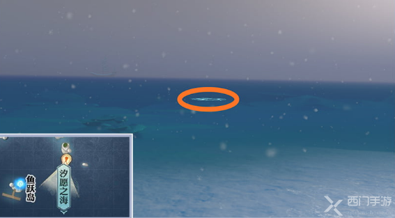 3、然后就可以获得宝藏位置线索,具体位置是汐愿之海(473.150)去探查一个搁浅的船只,然后在旁边的水里会出现一个问号的交互键