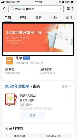 2.然后在上面的搜索框内直接输入”2020年度账单“,点击搜索即可;